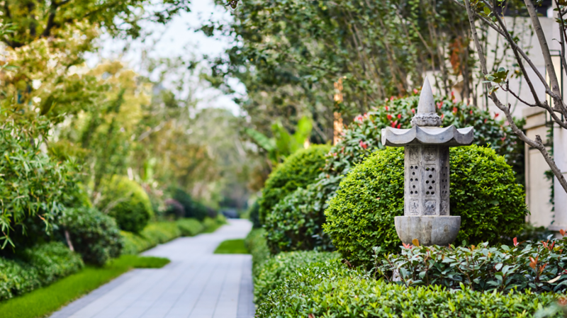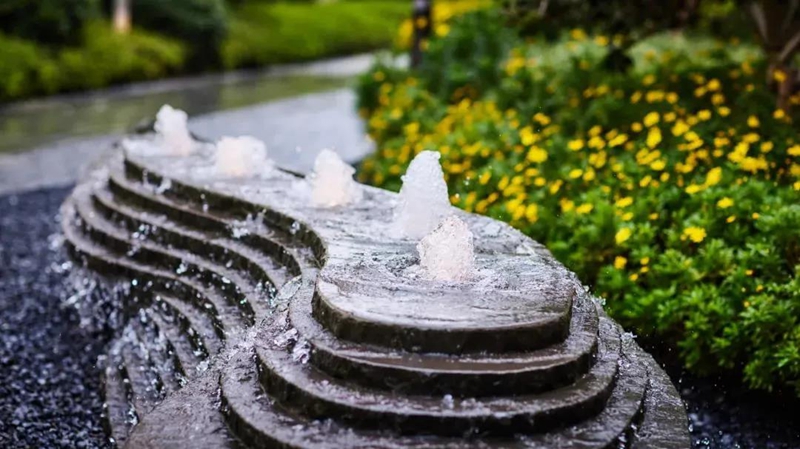 園區中央以水系為主,在游園動線上做到“以水相迎,依石尋道”。通過景觀提升的需求調研發現,業主們希望此處的景觀營造更貼近自然和生活情趣,為達到業主理想的效果,我們首先運用多重植物的巧妙搭配,讓自然景觀起到了引導作用,并以植物柔化石材本體的生硬,營造出了氣息濃郁的江南勝景,讓正弘瓴筑業主贊不絕口!