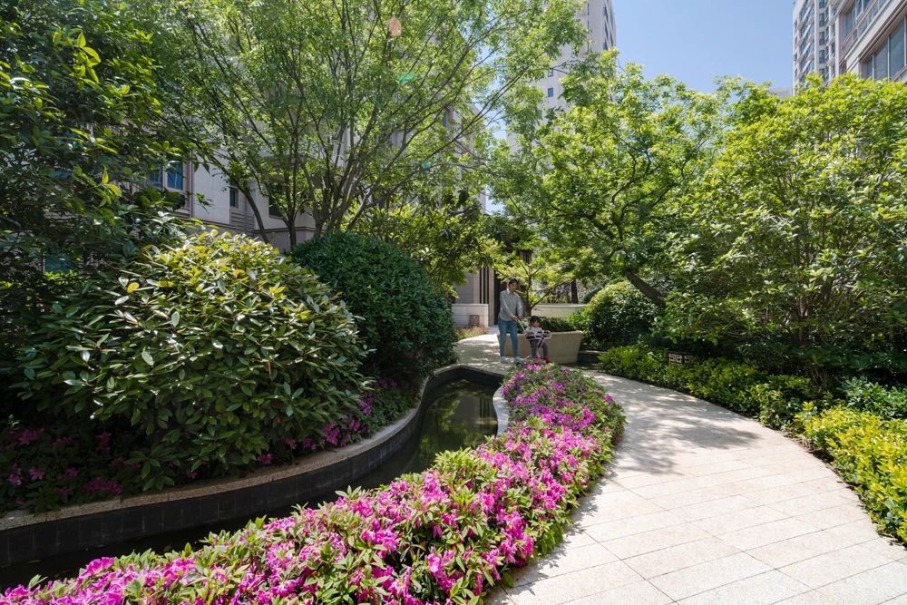 “康體花園、芳香花園、親子花園、流水花園、閱讀花園”,本案的五大交融花園呈現出四時變化、全天候早晚各有不同的動態景觀,因此,紫云賦做到了將光影入畫,借光線變化形成豐富的景觀。